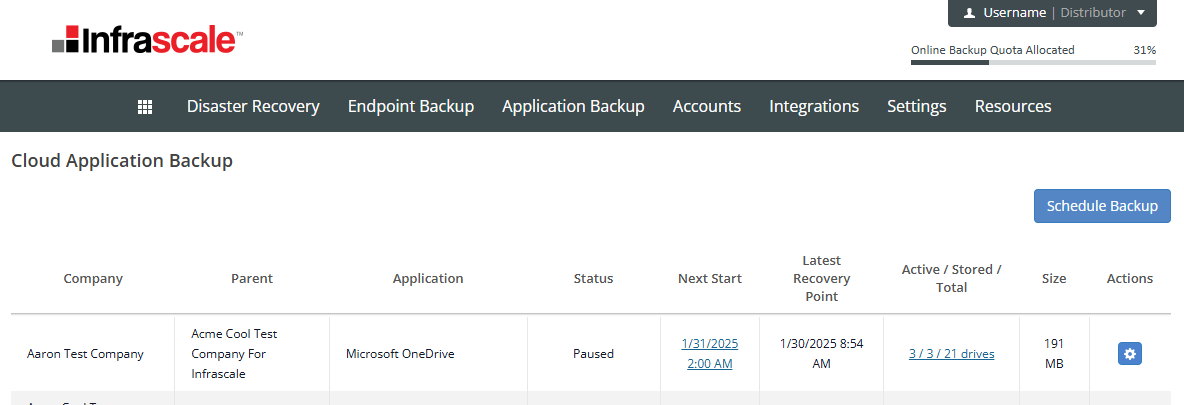 Activate backup task for Microsoft OneDrive in Cloud Application Backup