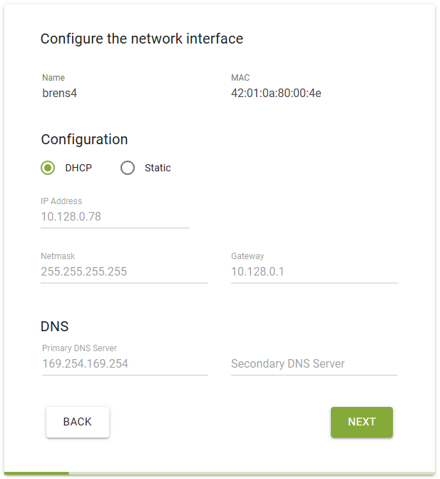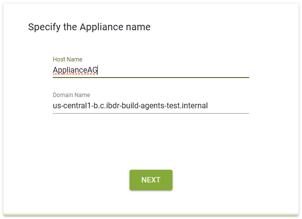 After specifying the appliance name, configure its network interface.