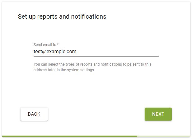 After enabling cloud replication, enter an email address to send all appliance reports and notifications to.